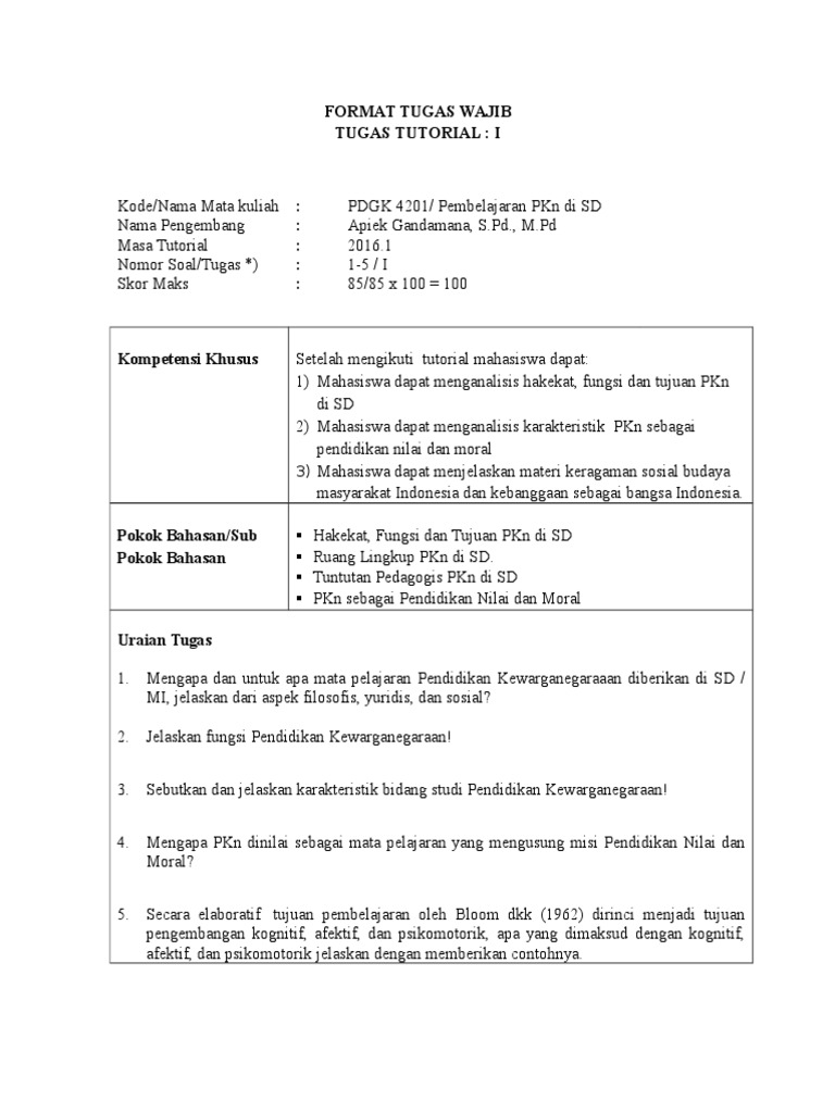 Taman Ilmu Dan Hikmah Modul 1 Hakikat Fungsi Dan Tujuan Pkn Di Sd