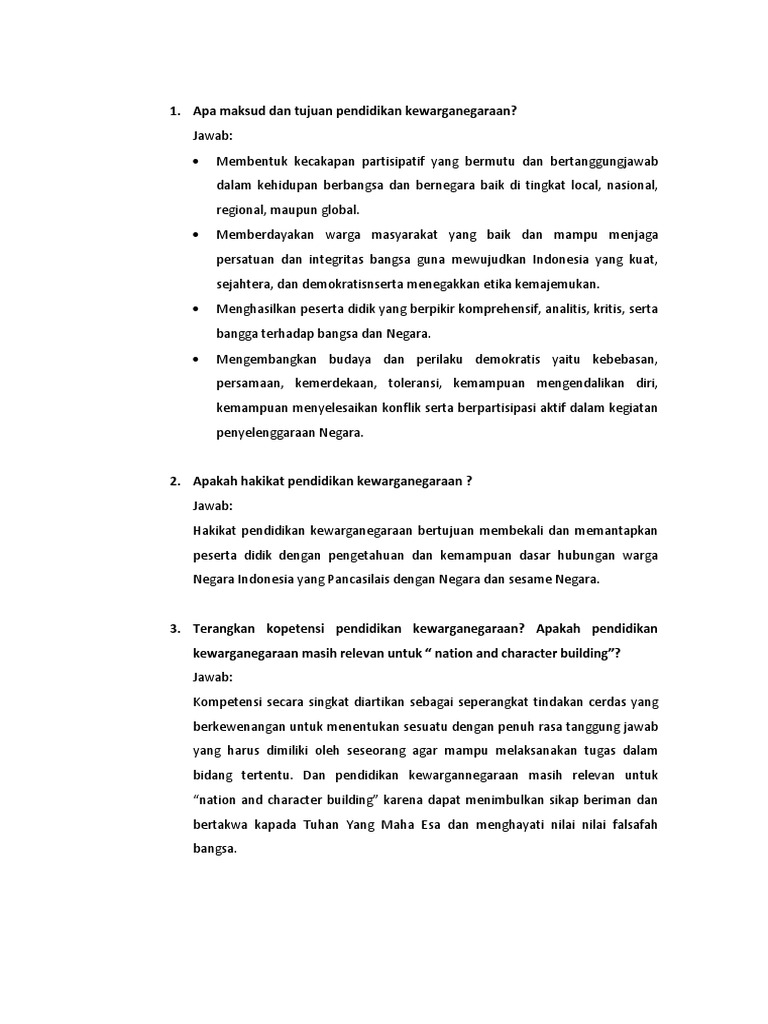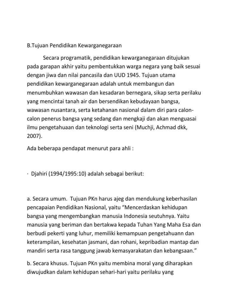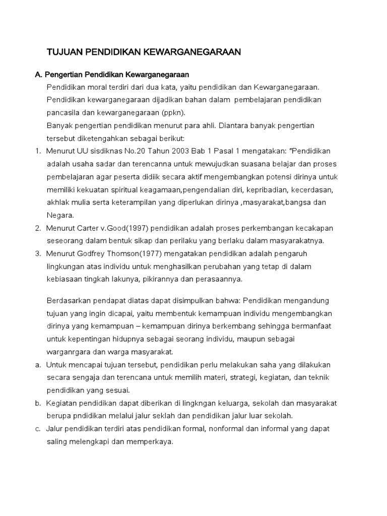 Tujuan Pendididikan Kewarganegaraan Docx