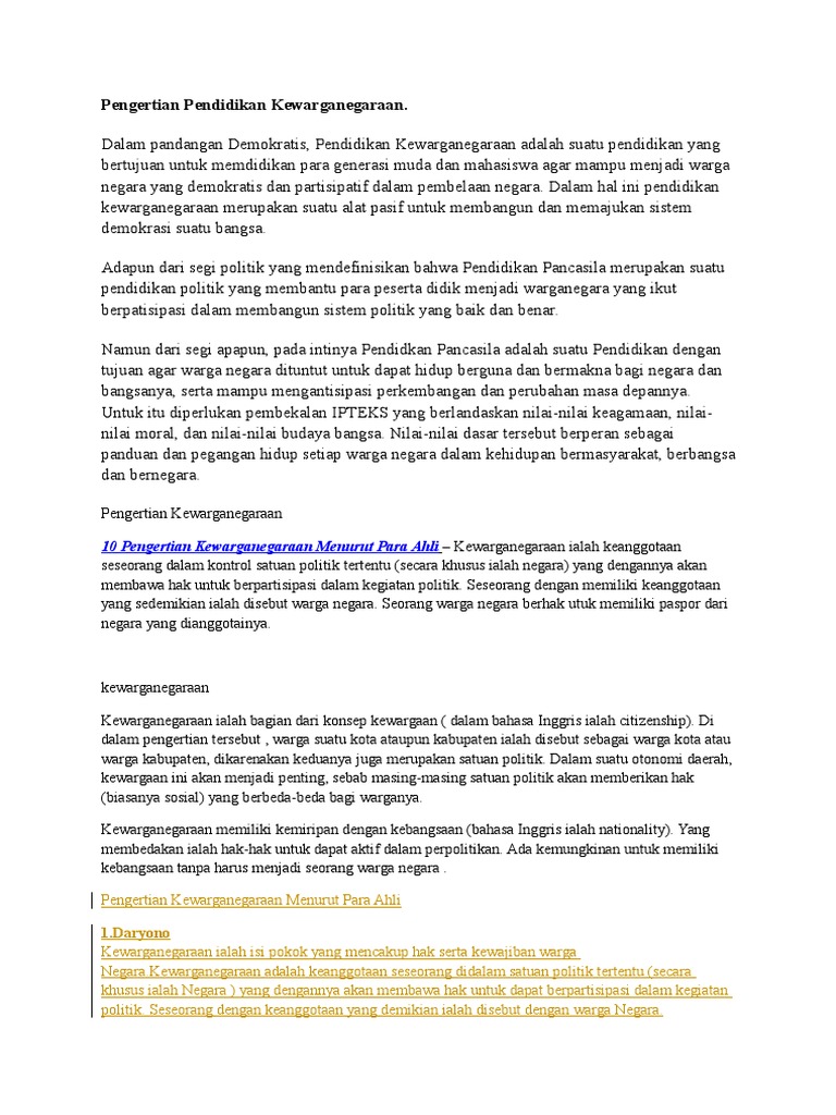 Pengertian Pendidikan Kewarganegaraan Civic Education Dan