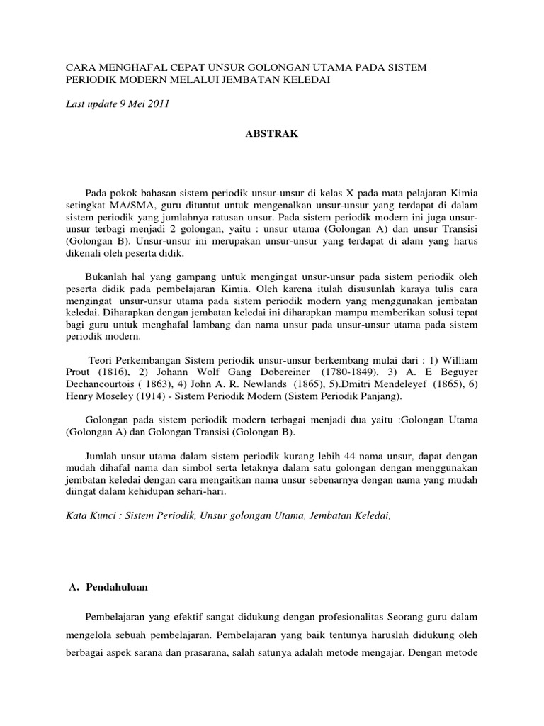 Cara Menghafal Unsur Kimia Karung Pelajaran
