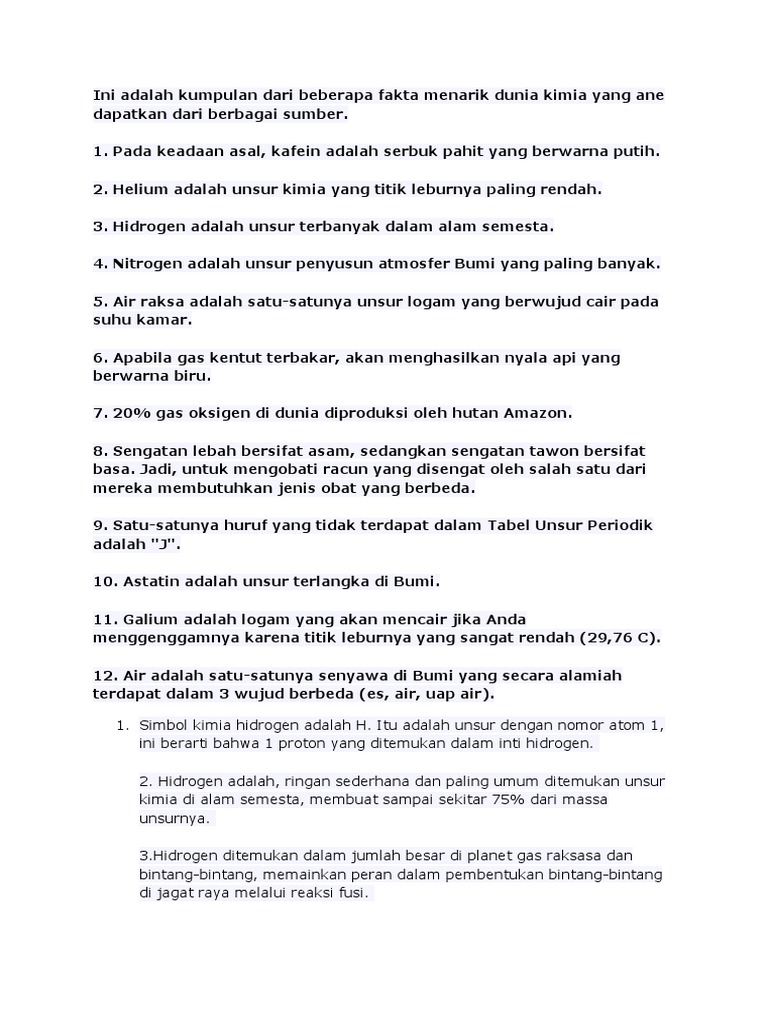 Unsur Kimia Hidrogen H Laboratorium Smk