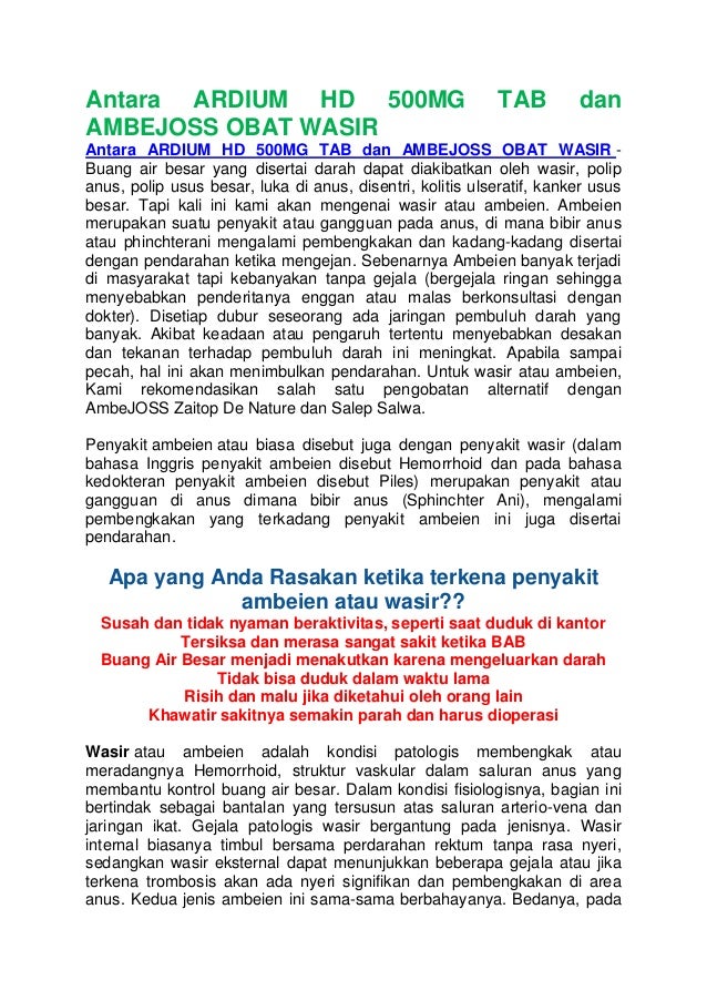 Antara Ardium Hd 500 Mg Tab Dan Ambejoss Obat Wasir