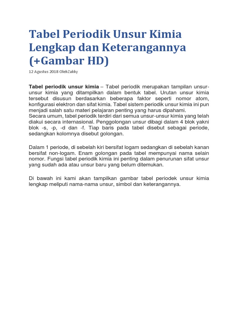 Tabel Periodik Unsur Kimia Hd Lengkap Dan Keterangan