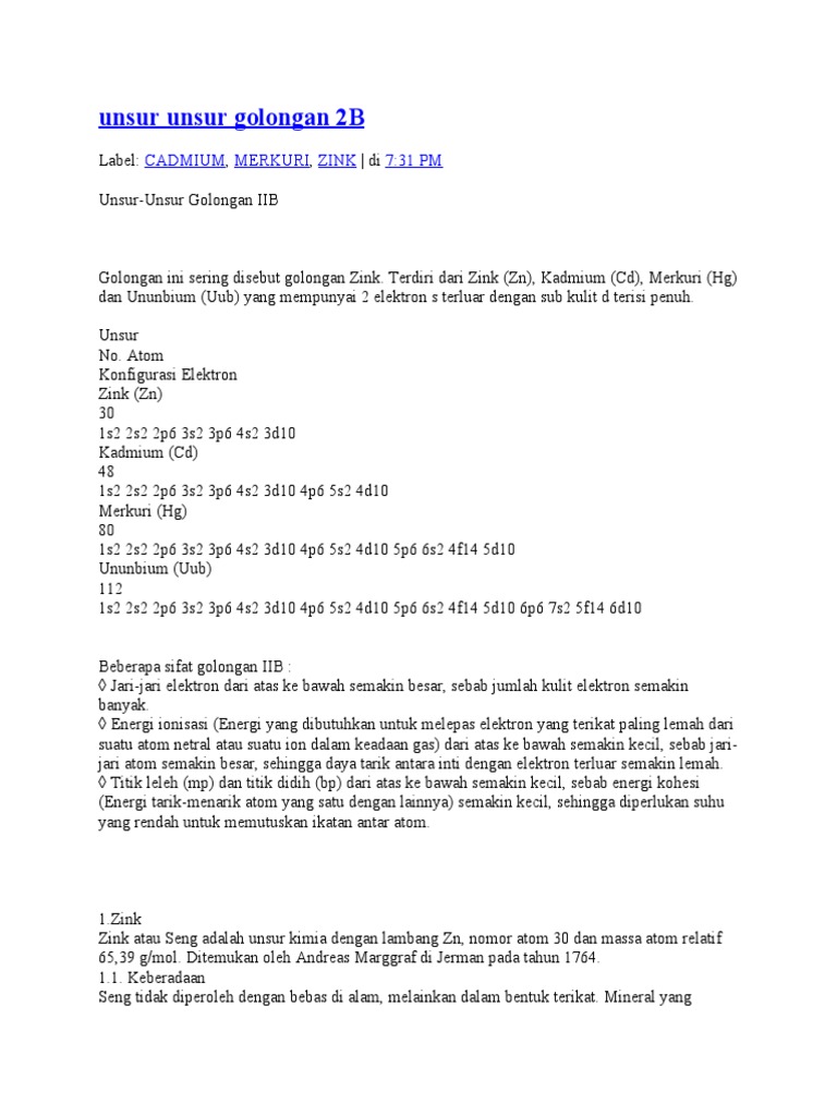 Keberadaan Unsur Zn Seng Dan Hg Merkuri Asyfariatus Zulfa Azhar
