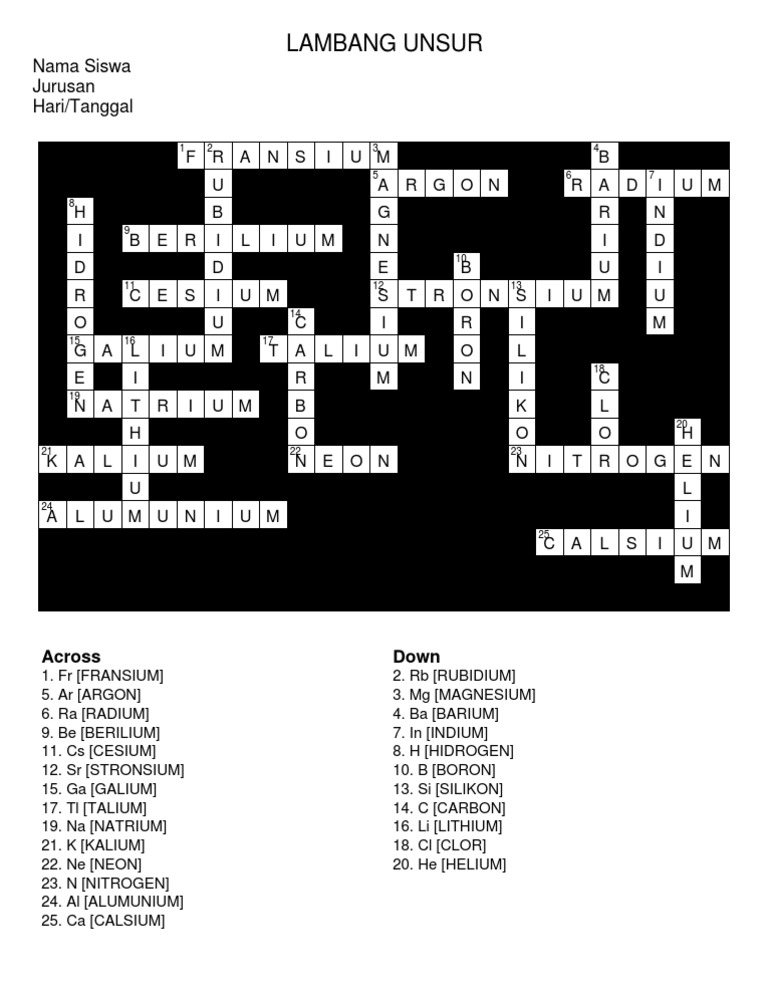 Jawaban Tts Lambang Unsur Answer