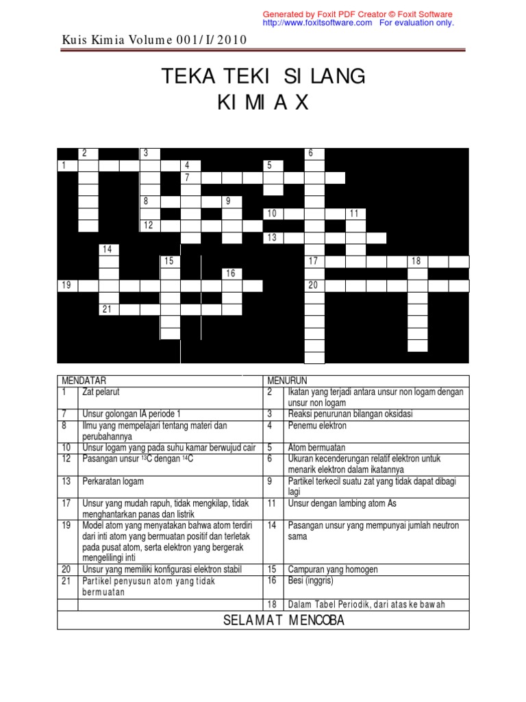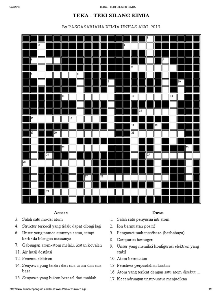 Kimia 2018 Kuis Tts Kimia Rebut Hadiah Menarik Keterangan