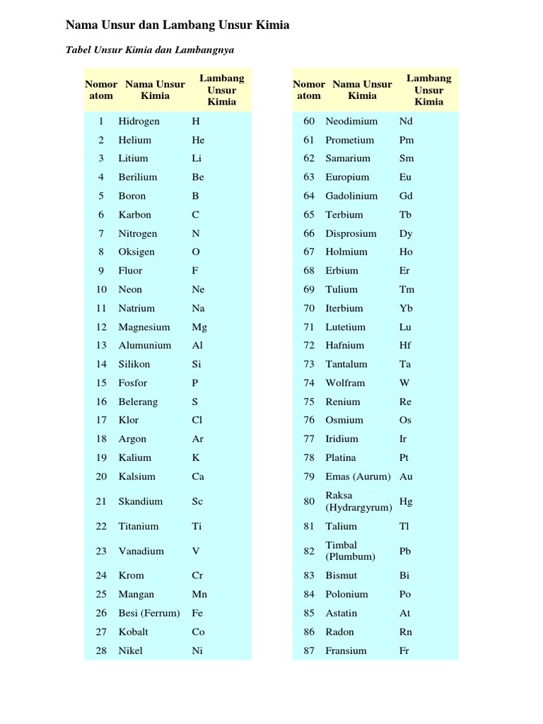 Mengenal Unsur Kimia Berikut Lambangnya Rumushitung Com