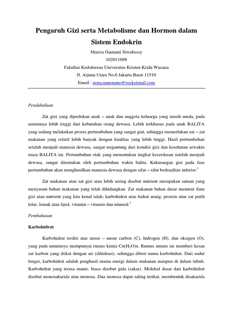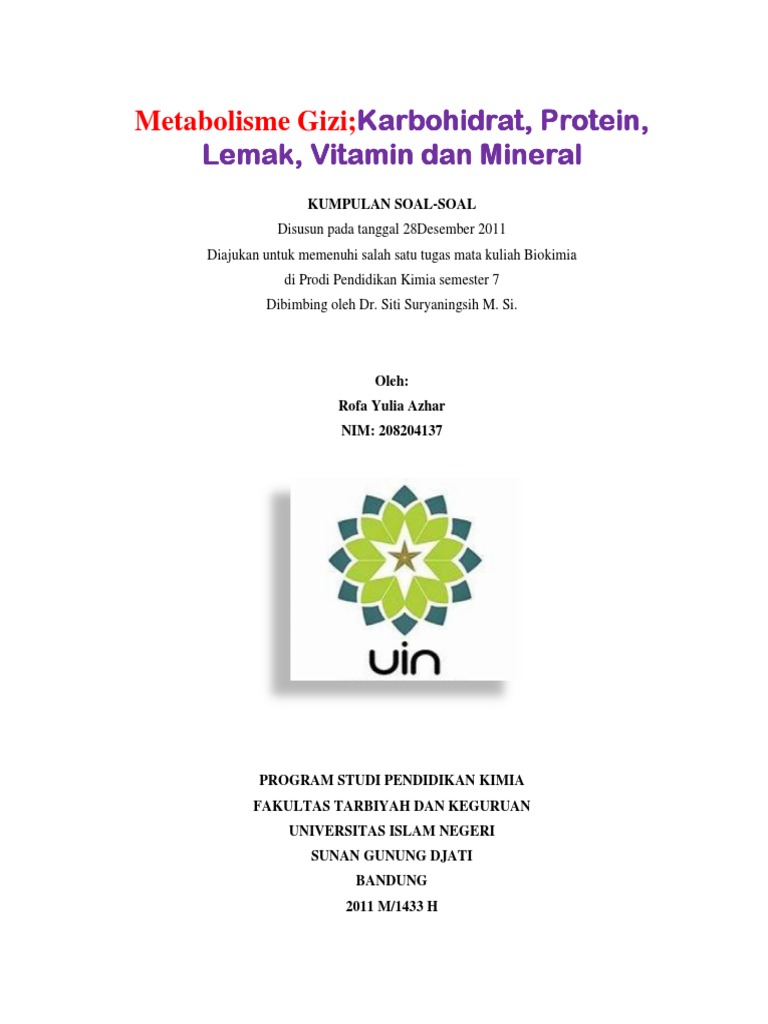 Metabolisme Gizi Karbohidrat Protein Lemak Vitamin Dan Mineral