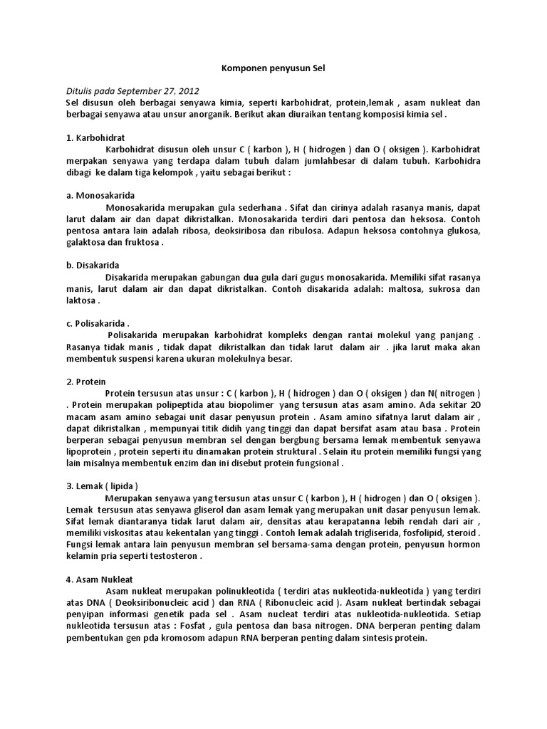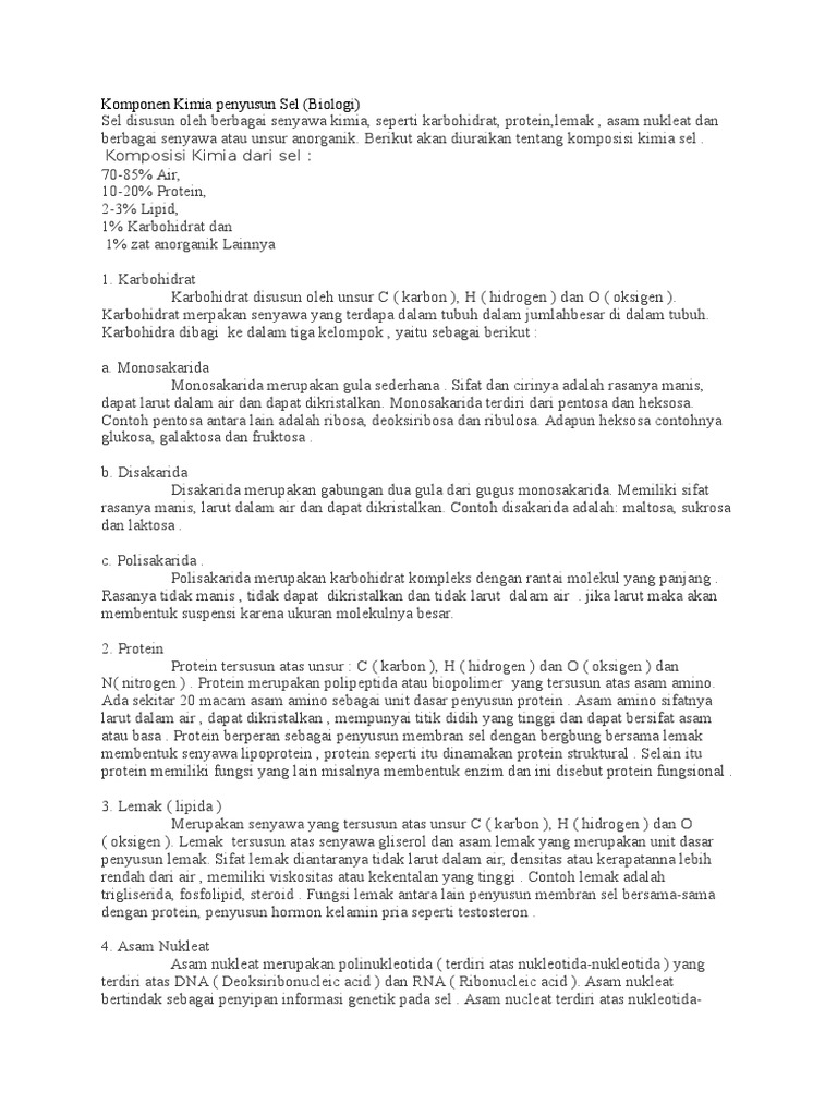 Pelajaran Biologi Sekolah 4 Komponen Kimiawi Penyusun Sel Pada