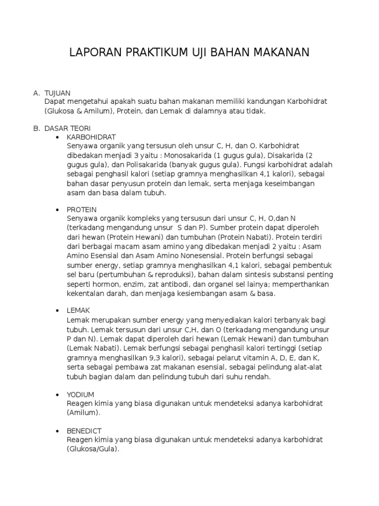 Makalah Melakukan Analisa Karbohidrat Protein Dan Lemak Dalam