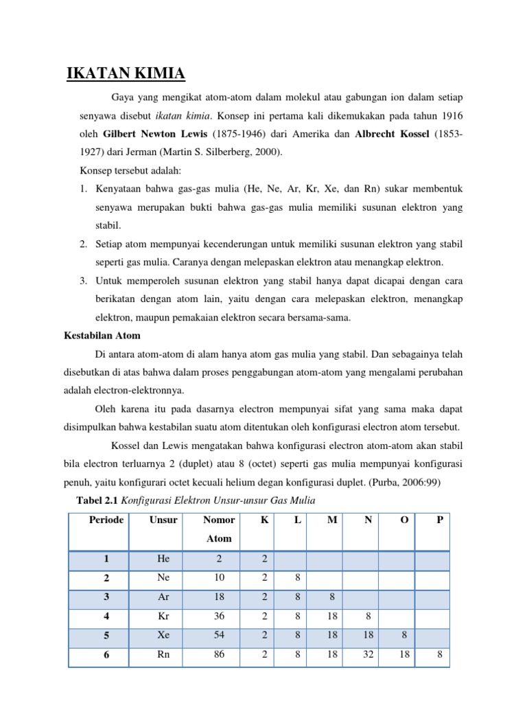 Ikatan Kimia Dan Kestabilan Atom Jejaring Kimia