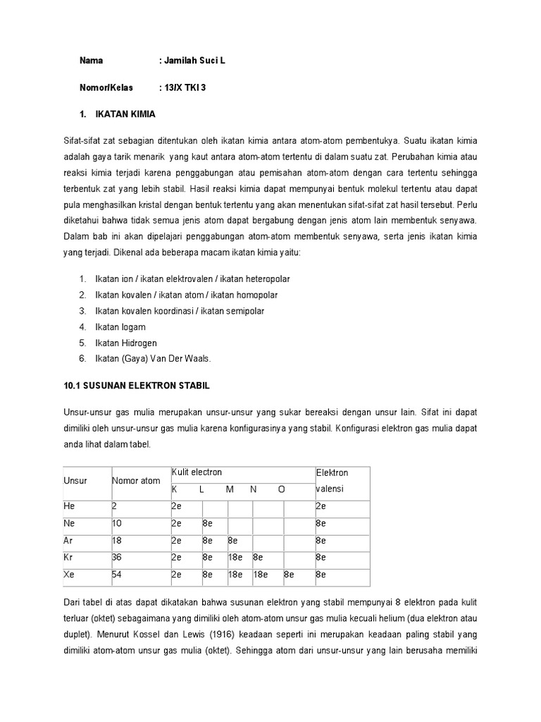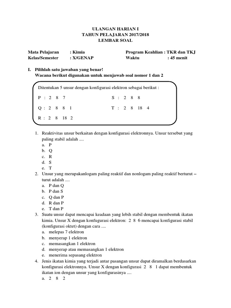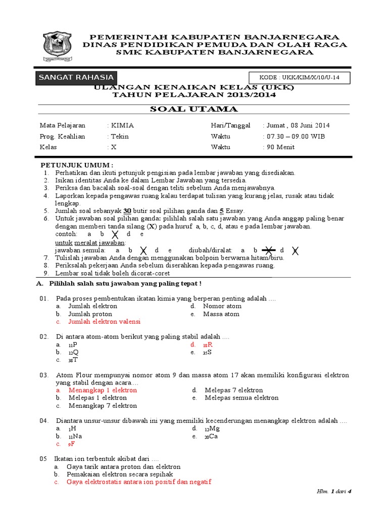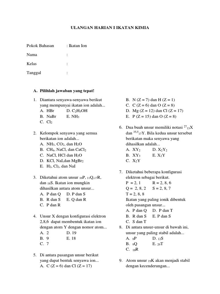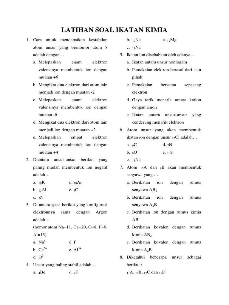 Bank Soal Kimia Kelas 10 Sma Bab Ikatan Kimia