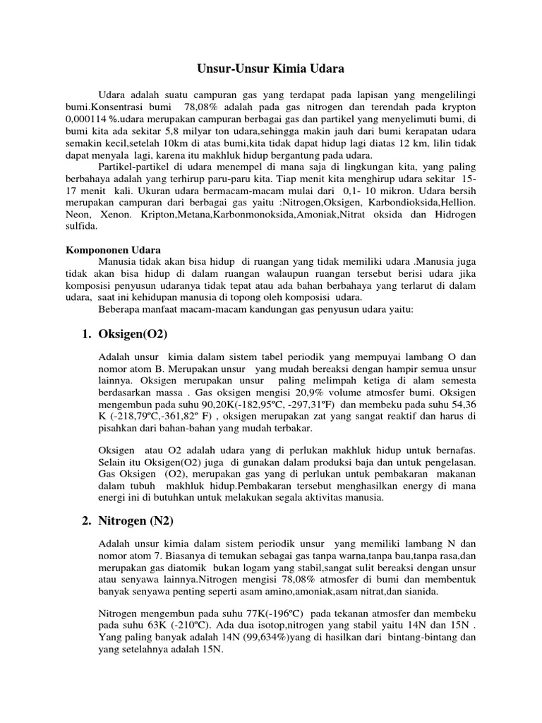 Kandungan Unsur Kimia Dalam Atmosfer