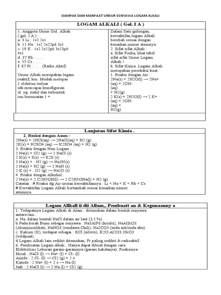 Dampak Dan Manfaat Unsur Senyawa Logam Alkali