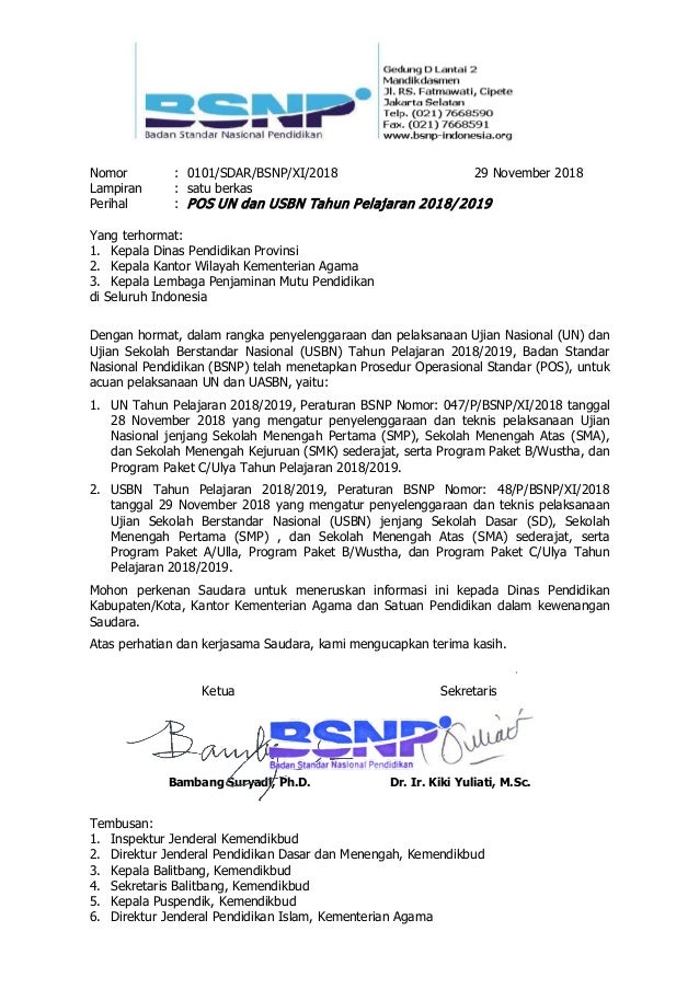 Pengantar Pos Un Dan Usbn Tahun Pelajaran 2018 2019