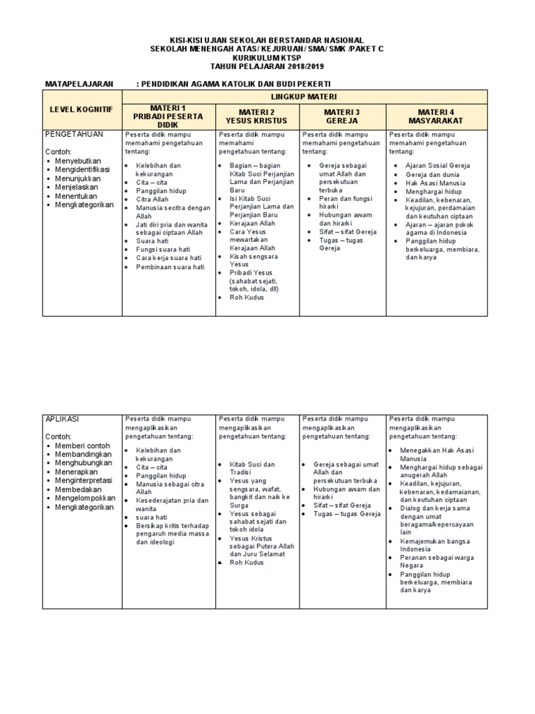 Tolong kisi kisi usbn agama katolik smp dan sma pak. Fungsi kisi kisi usbn smamasmkmak tahun 2019 merupakan sebagai acuan pengembangan dan perakitan naskah soal ujian baik soal usbn maupun soal un. Pendidikan agama katolik dan budi pekerti download.