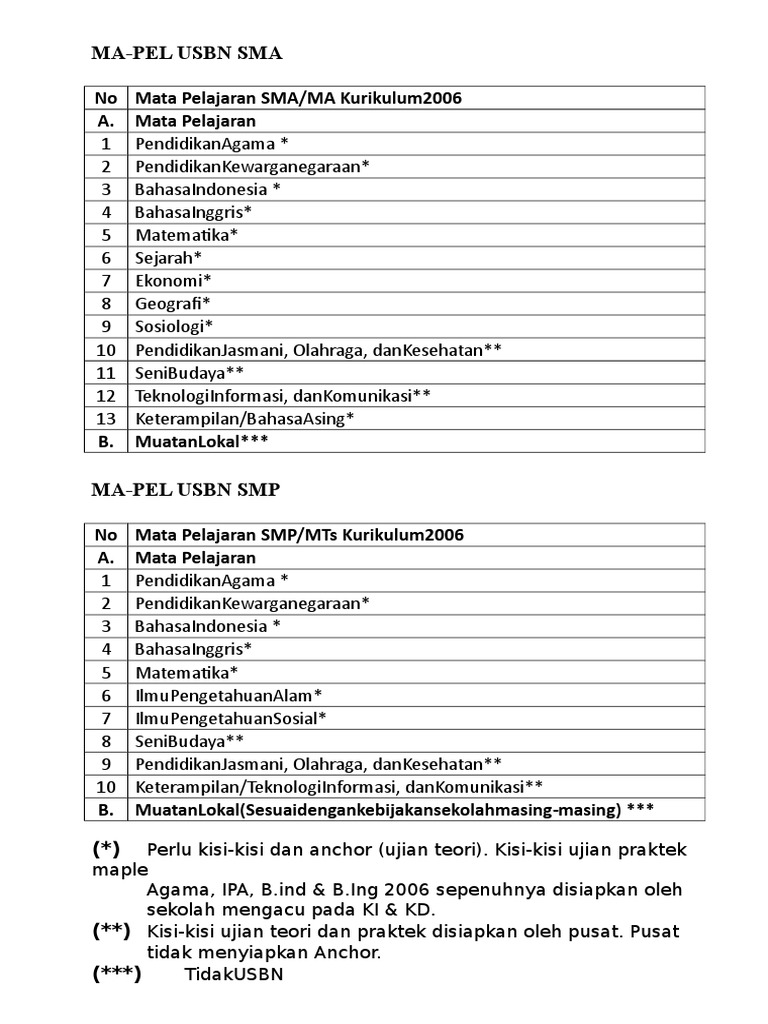 Usbn 2018 Untuk Semua Mapel Berikut Ini Daftarnya Panduandapodik Id