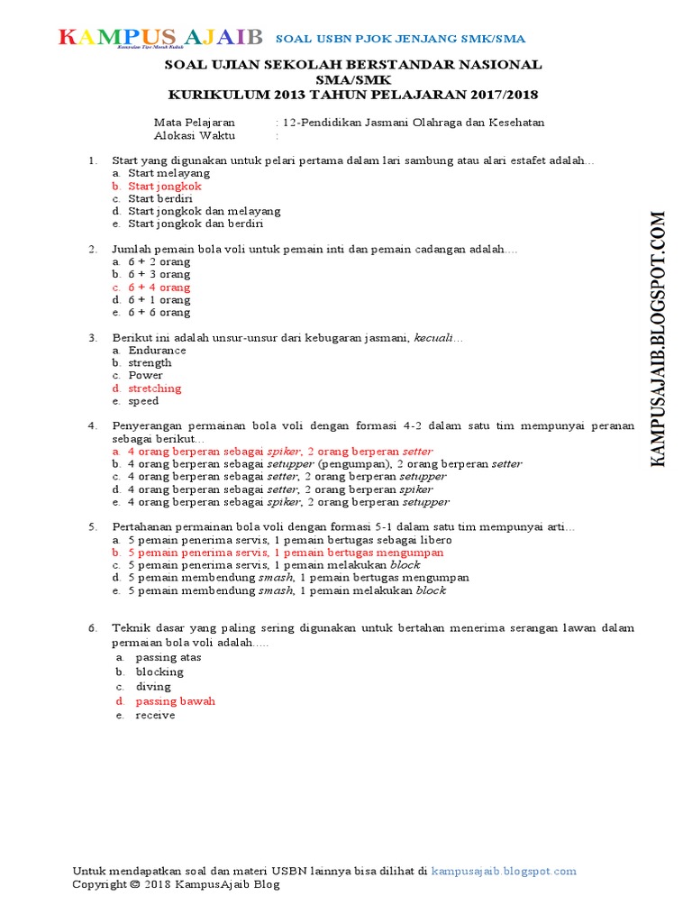 Soal Usbn Penjasorkes Pjok Sma Smk 2018 Kunci Jawaban Rangkuman