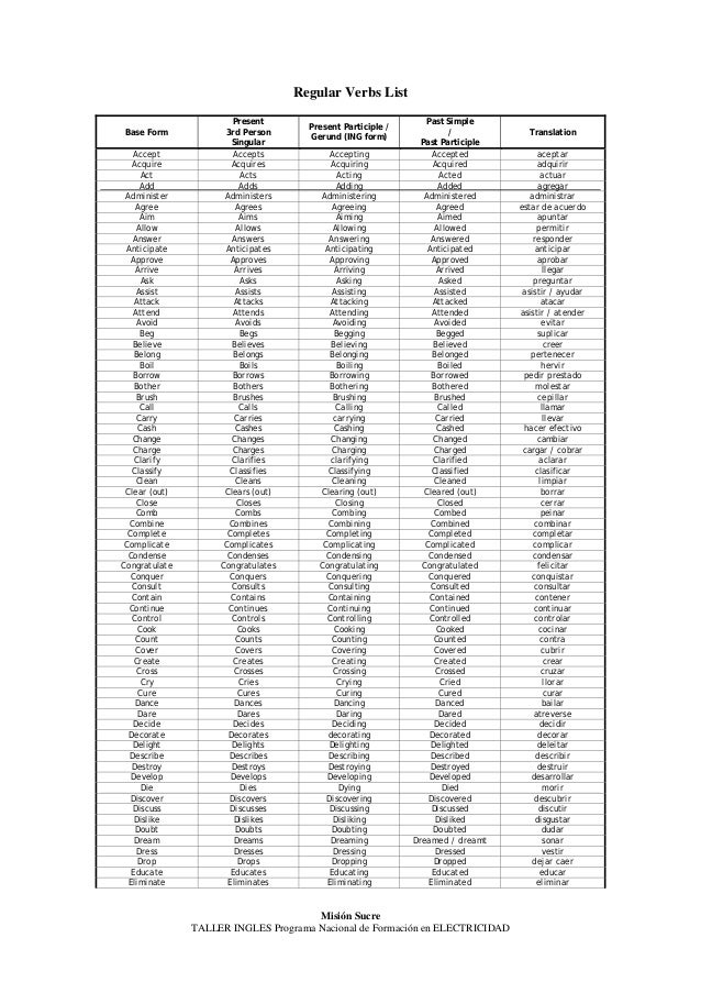 Verbos Regulares E Irregulares Ingles
