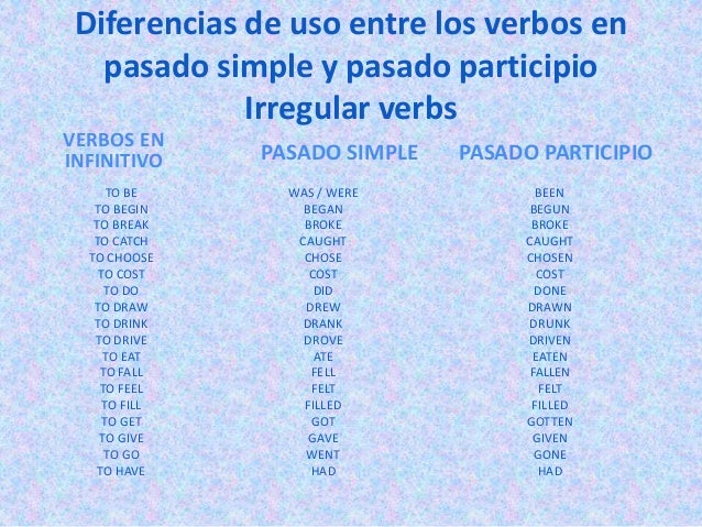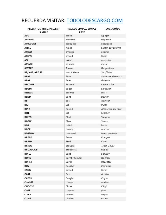 Lista De Verbos Irregularesinfinitive Simple Past Past Participle