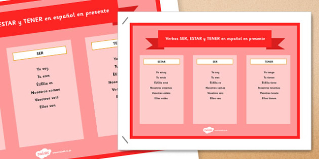 Poster Verbos Ser Estar Y Tener En Presente Simple En Espanol Spanish