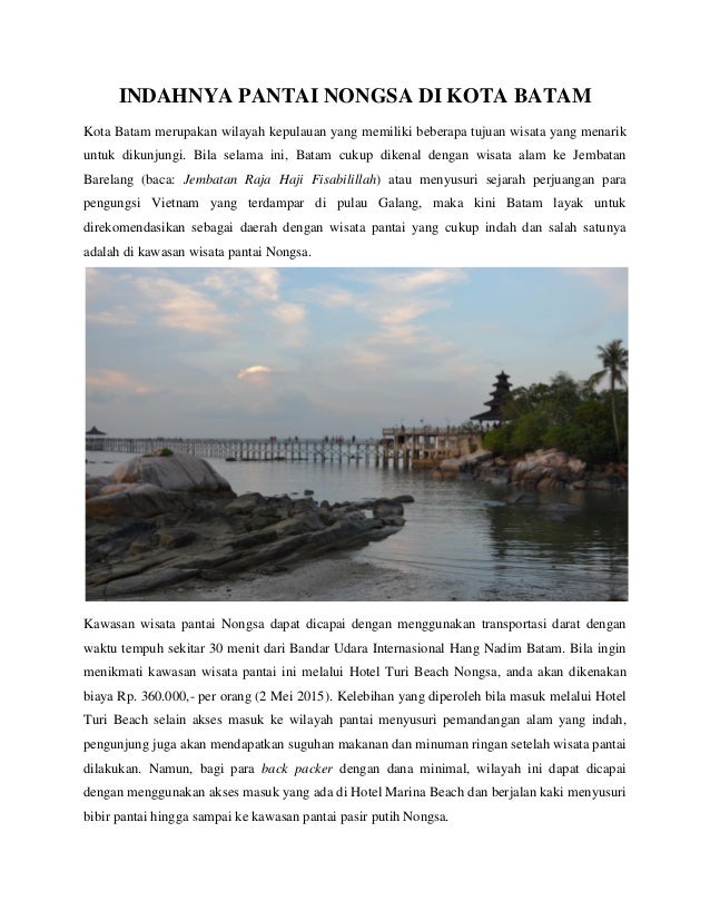 Wisata pantai nongsa batam. Wilayah kota batam terdiri dari pulau batam pulau rempang dan pulau galang dan pulau. Terletak di bagian barat pulau batam pantai marina tidak hanya mencakup sebuah kawasan. From the largest inflatable water theme park near singapore to adorable teddy bear cafes weve scoured batam for the hidden gems that you might have missed.