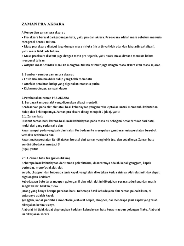 Tugas Sejarah Masa Pra Aksara Manusia Purba Membuat Tugas Sekolah