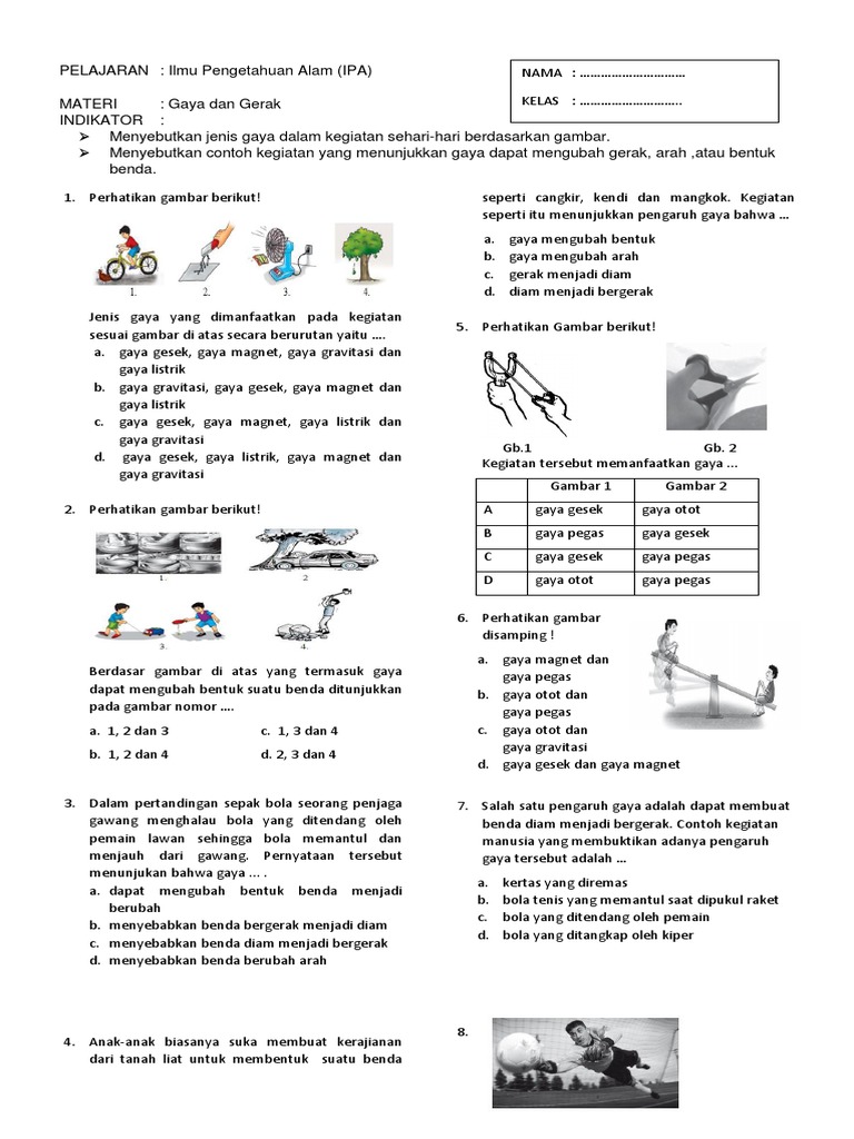 Latihan Soal Ipa Bab Gaya Docx