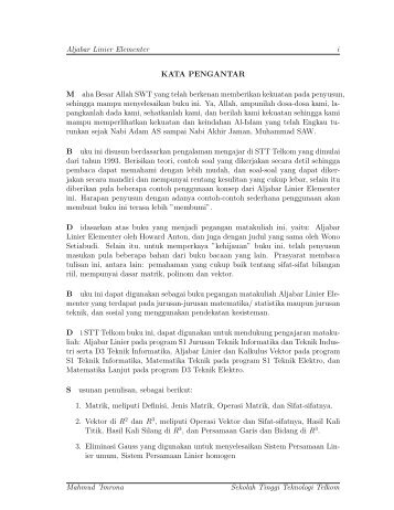 Aljabar Linier Elementer I Kata Pengantar M Aha Besar Allah