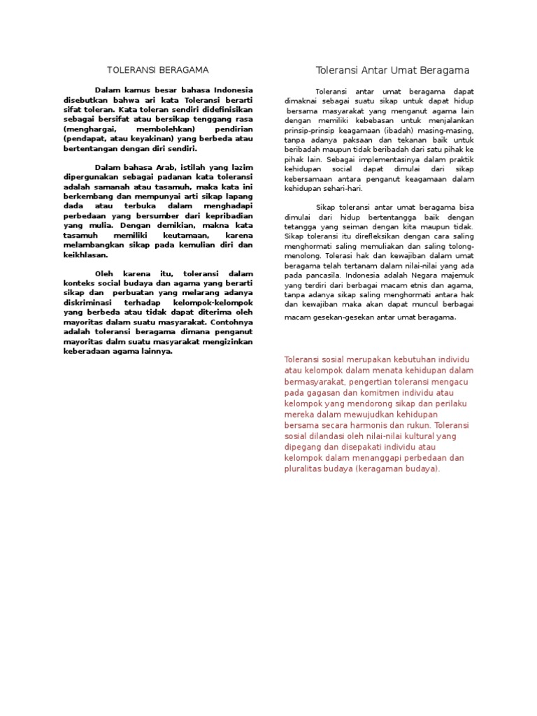 Toleransi Dalam Kehidupan Bermasyarakat Berbangsa Dan Bernegara