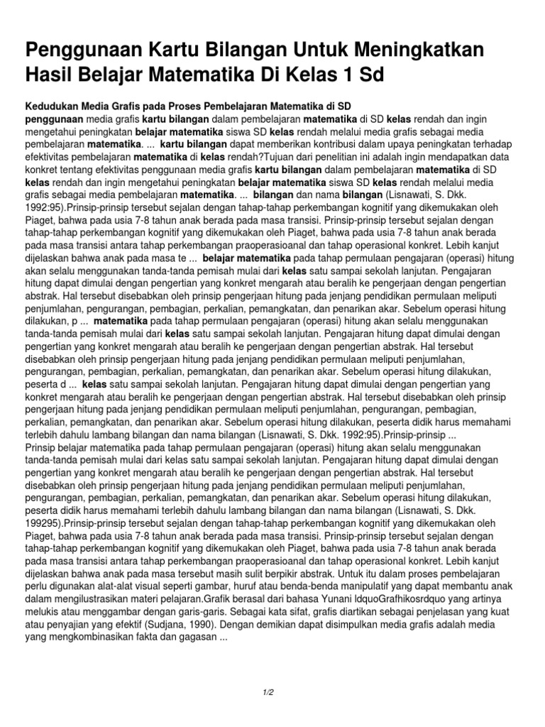 Penggunaan Kartu Bilangan Untuk Meningkatkan Hasil Belajar