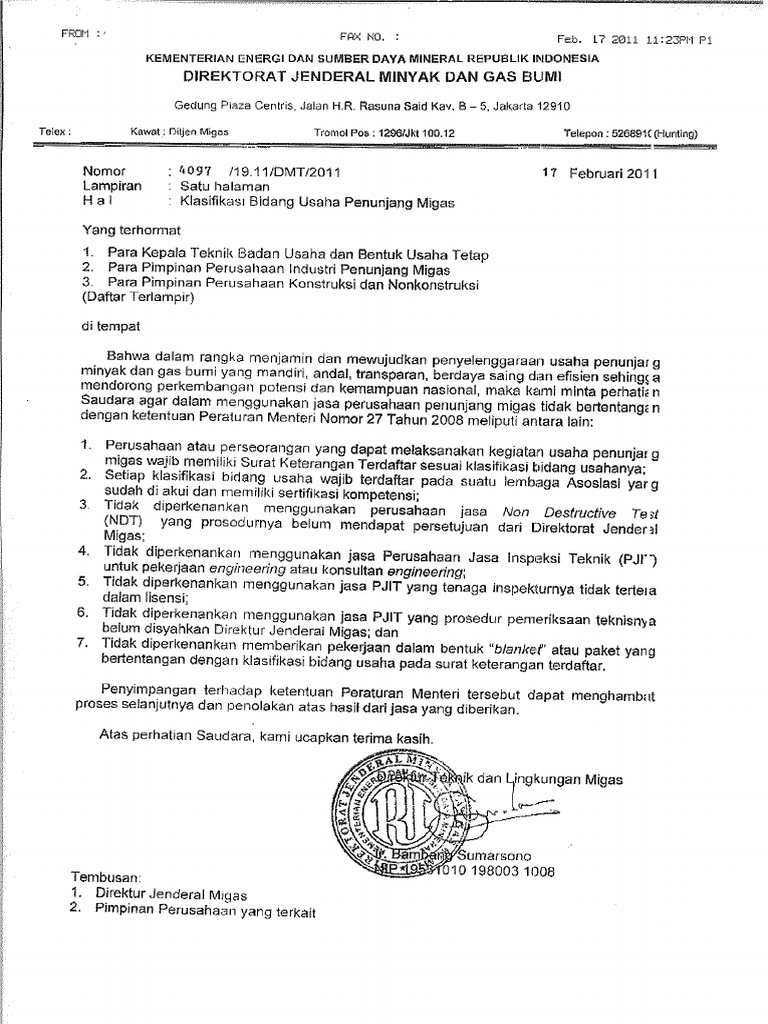 Edaran Klasifikasi Bidang Usaha Penunjang