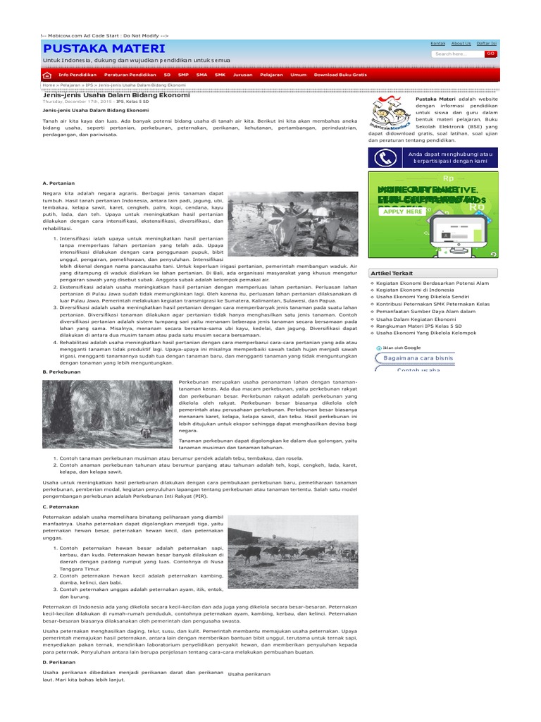 Ips Kls 5 Jenis Jenis Kegiatan Perekonomian Di Indonesia