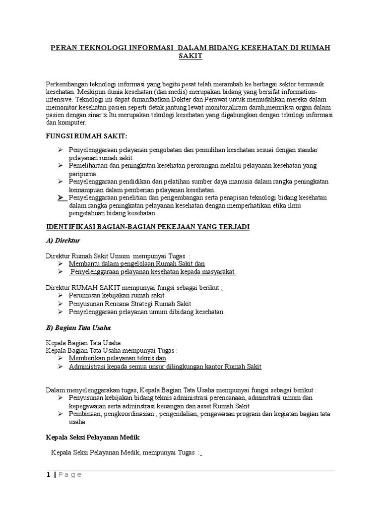 Peran Teknologi Informasi Dalam Bidang Kesehatan Di Rumah Sakit