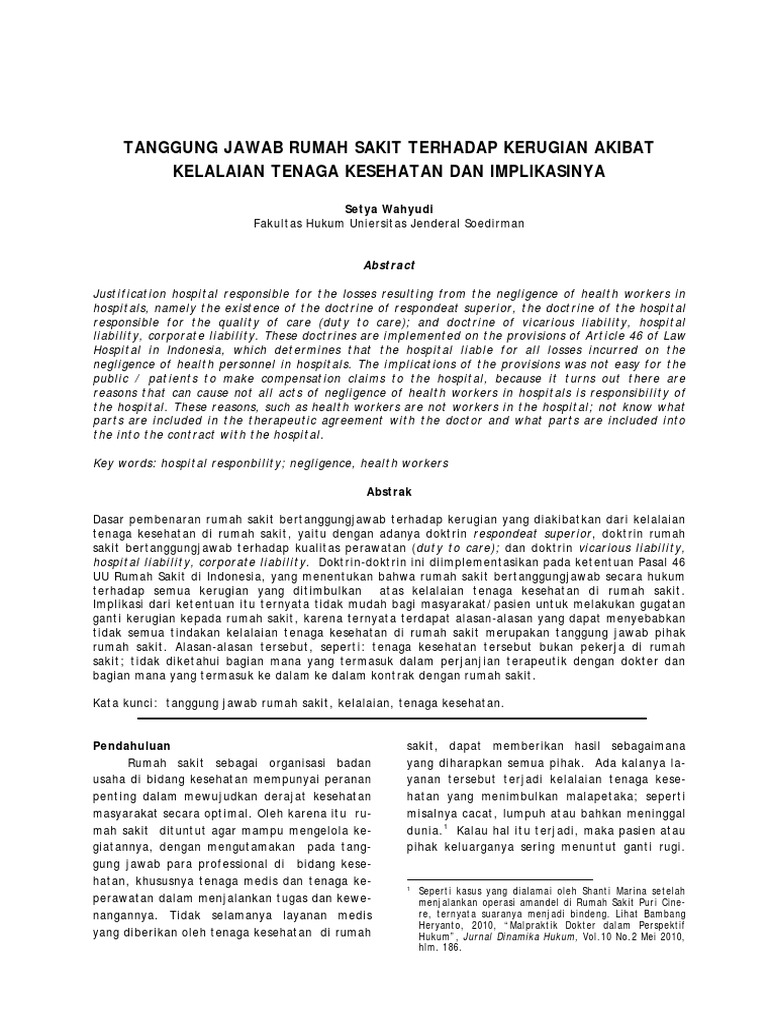 Tanggung Jawab Rumah Sakit Akibat Kelalaian Medis