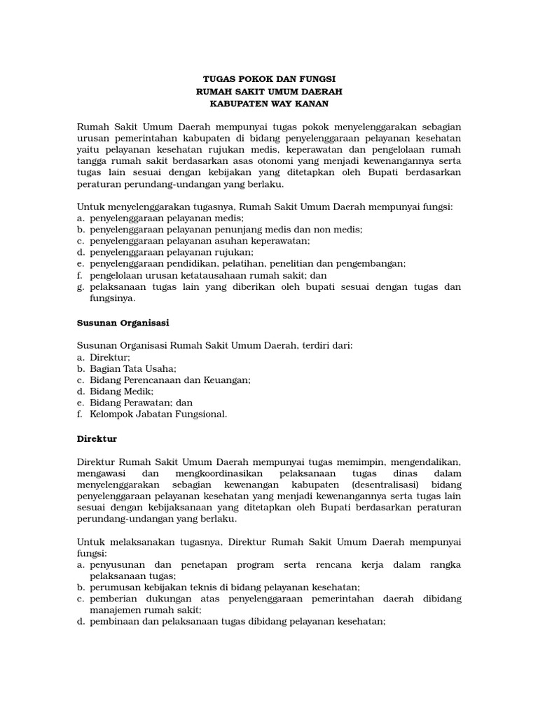 Doc Tugas Pokok Dan Fungsi Rumah Sakit Umum Daerah Kabupaten Way