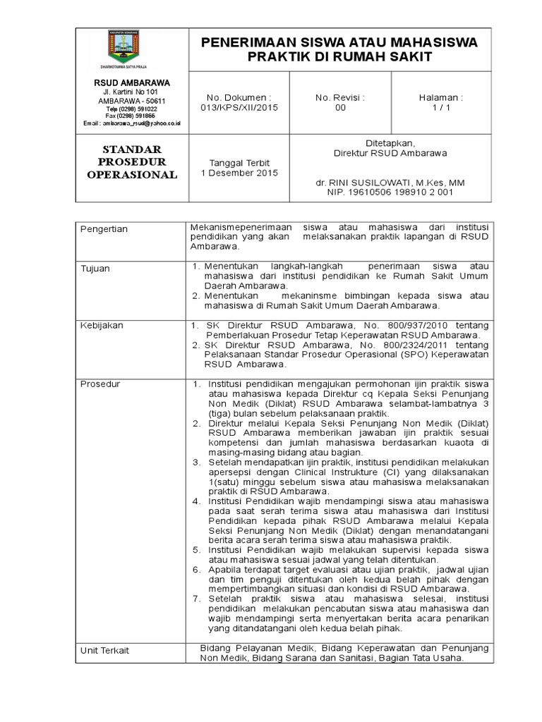 13 Spo Penerimaan Siswa Atau Mahasiswa Praktik Di Rumah Sakit Doc