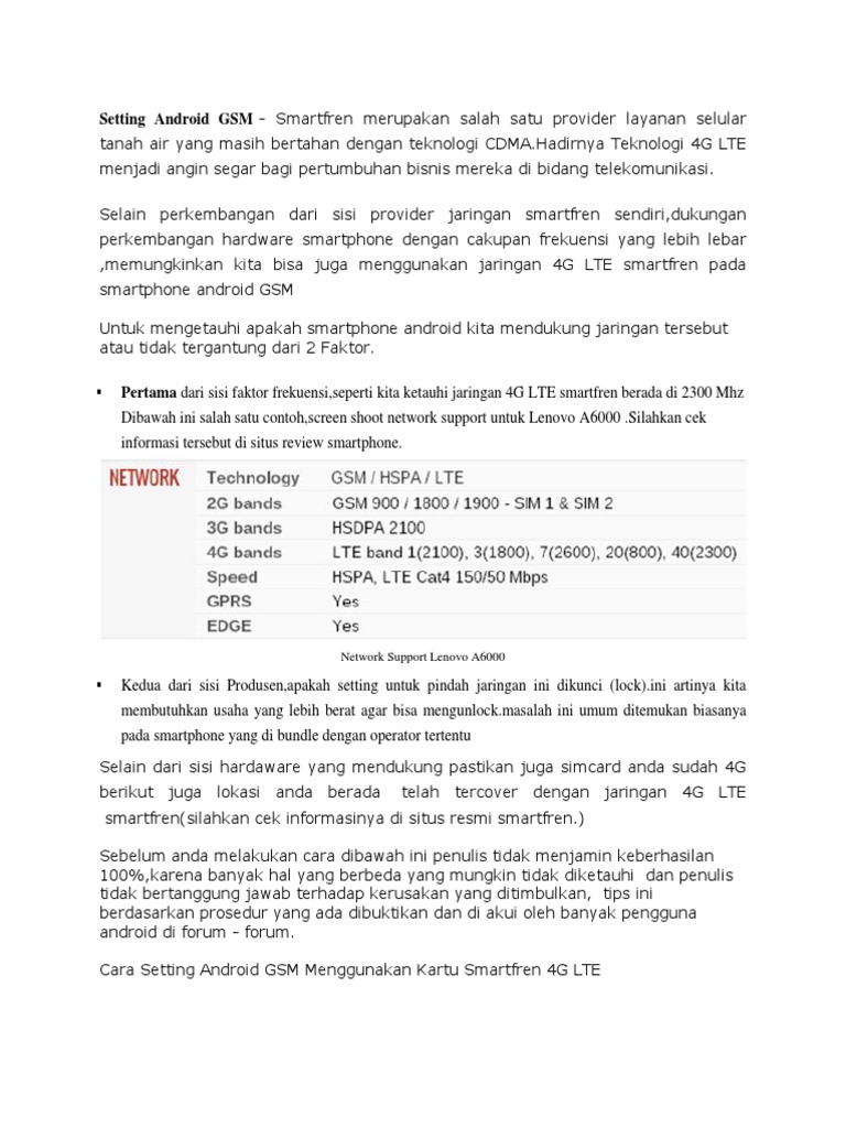 Setting Android Gsm To Smartfren 4g Lte