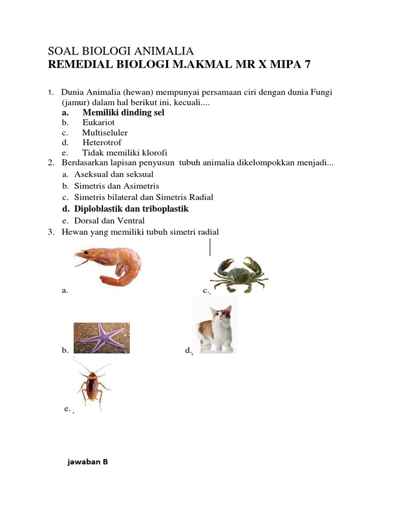Soal Biologi Kelas 10 Tentang Animalia Soal C Myrightspot Com