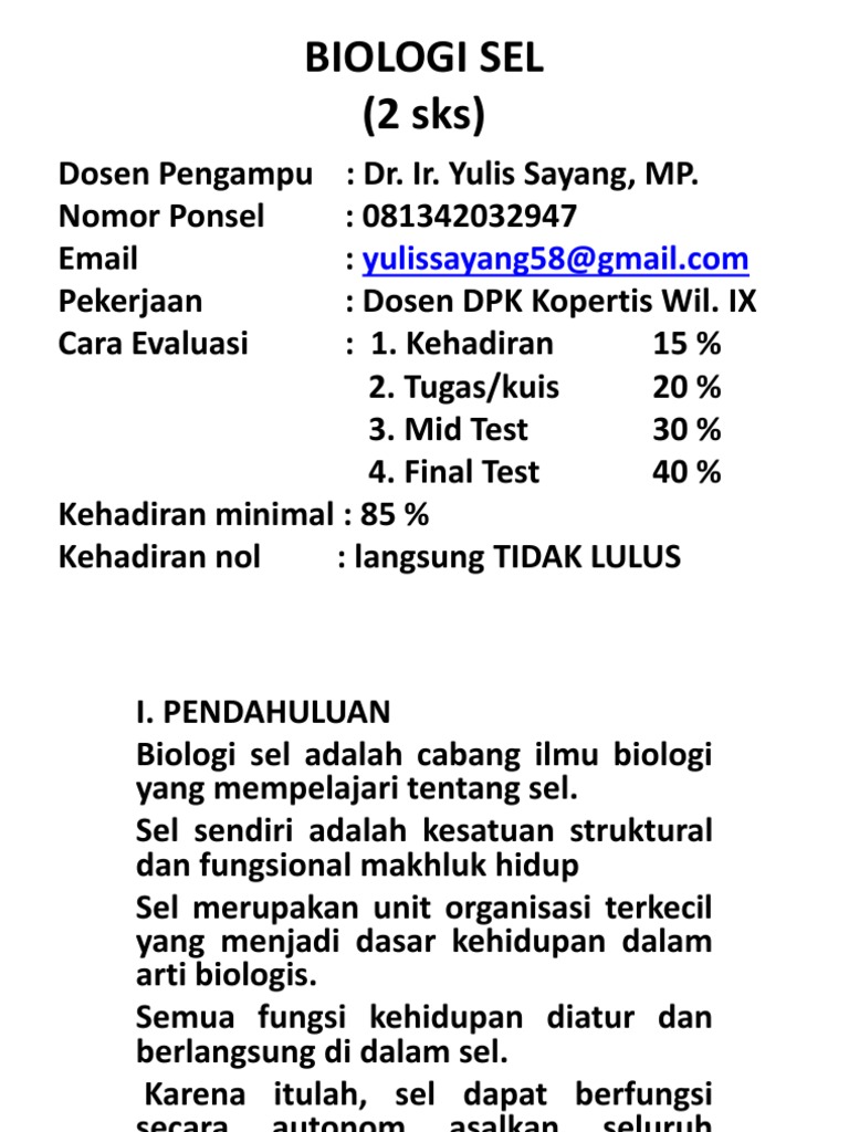 Materi Kuliah Biologi Umum Pdf Nbsp Bio10102 Biologi Sel