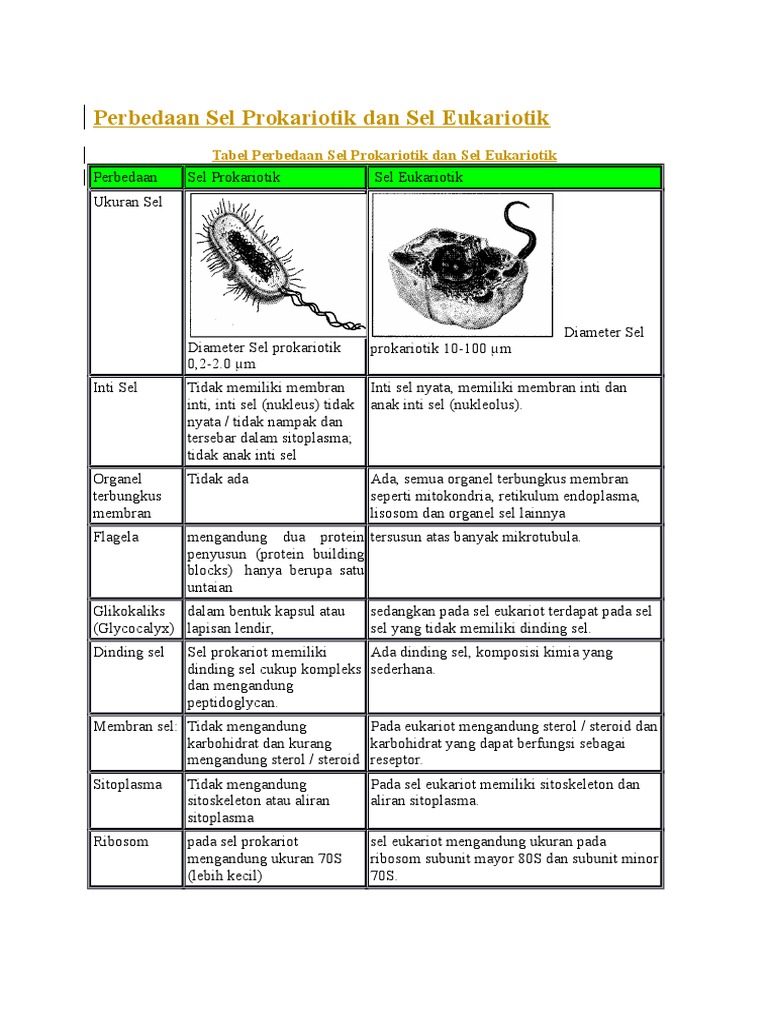 Tabel Perbedaan Sel Prokariotik Dan Eukariotik Docx