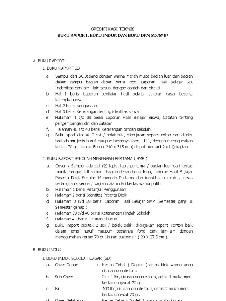 Spesifikasi Teknis Raport Sd Smp Diknas