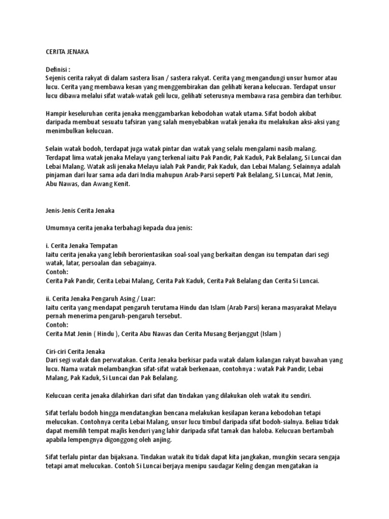 Ciri Sifat Umum Cerita Jenaka 1 Isi Karya Annie Noris Academia Edu