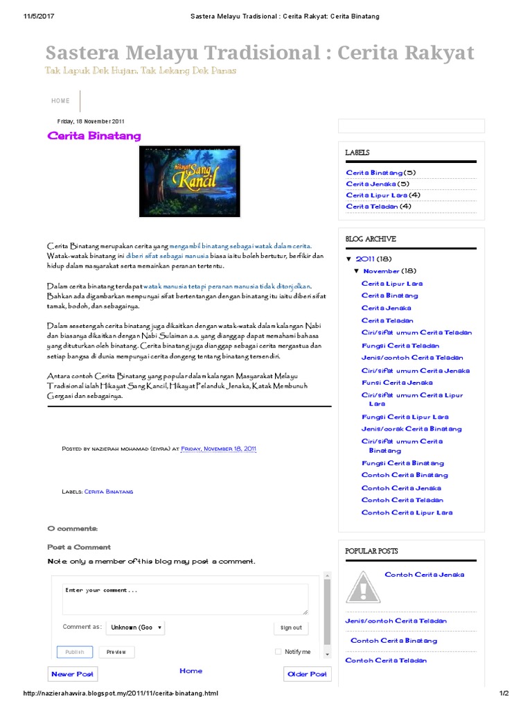 Sastera Melayu Tradisional Cerita Rakyat Cerita Binatang