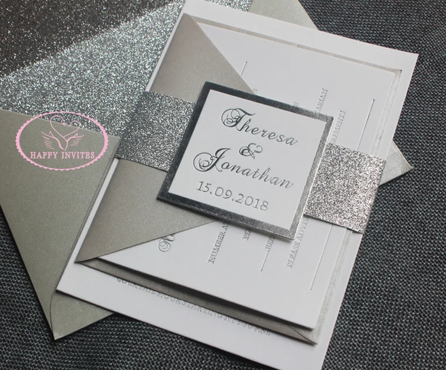 Hi1122 Perak Dan Putih Kartu Undangan Pernikahan Dengan Perak Cetak