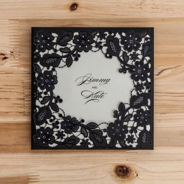 Cw5276 Hitam Timbul Laser Cut Undangan Pernikahan Gratis Pengiriman