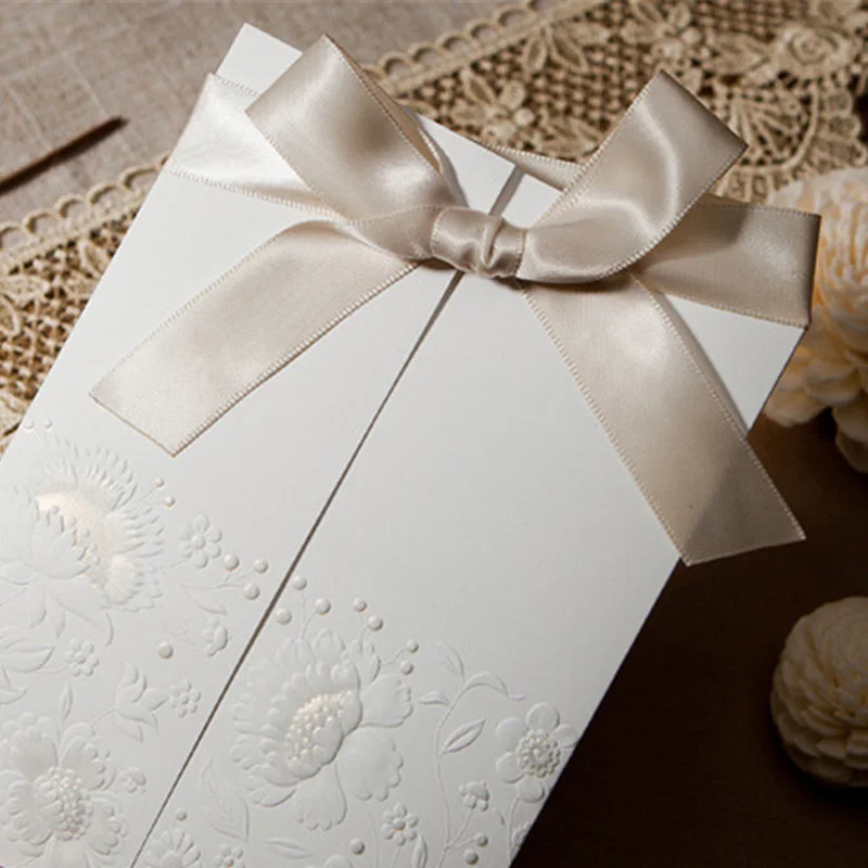 100 Pcs Gratis Pengiriman Putih Timbul Bunga Kartu Undangan