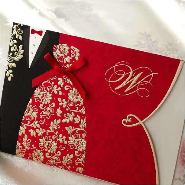 Pasangan Emas Timbul Undangan Pernikahan 2014 Kartu Undangan Dengan