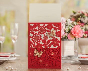 Wishmade Laser Cut Dan Timbul Undangan Pernikahan Kartu Merah Dengan