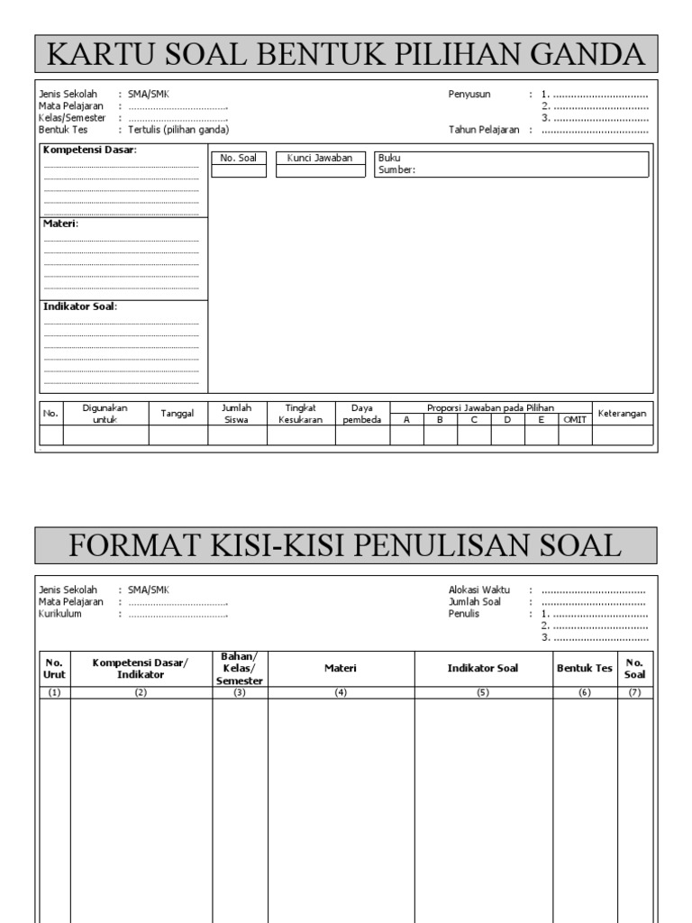 Contoh Aplikasi Kisi Kisi Dan Skor Kartu Soal Format Microsoft Excel